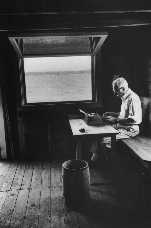 Absent the photo, the reader is left to conjure up an image of the nail keg, in an otherwise tidy and orderly room, heaping over with rejected, rumpled, and frustratingly discarded type-written pages. An aging writer, still working diligently to perfect his craft, always successful in the end, but it doesn’t come easy.
