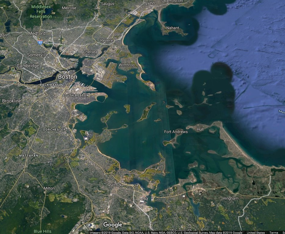 Boston Harbor, plump old daughter of the Revolution, exhausted